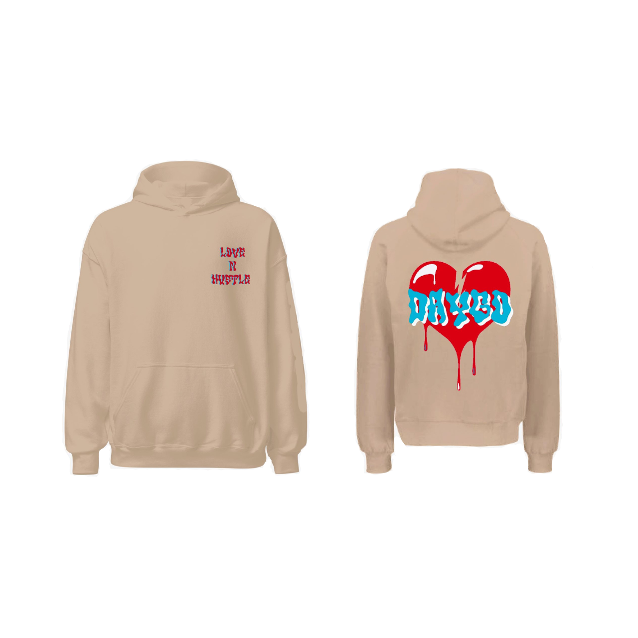 Retro Wave – Tan Hoodie Red/Baby Blue